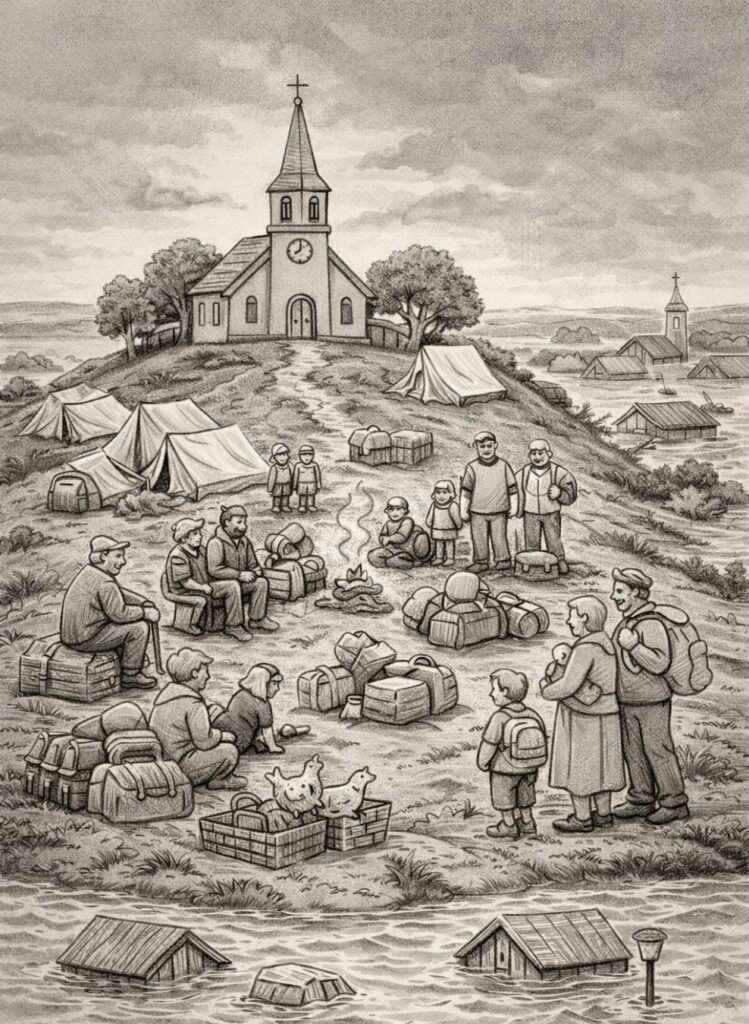 Wenn in Westerrönfeld früher das Hochwasser kam, suchten die Menschen wie überall auf der Welt den höchsten Punkt der Stadt auf. Am Hog’n Dor – dem Hohen Tor – fanden sie Schutz, Gemeinschaft und Sicherheit. Man kam zusammen, wartete ab und war füreinander da.