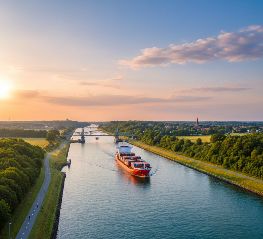 Stellen Sie sich vor, Sie blicken aus dem Fenster und sehen, wie große Schiffe gemächlich am Nord-Ostsee-Kanal vorbeiziehen. Das Haus Hog’n Dor Westerrönfeld liegt ruhig und idyllisch – nur wenige Schritte vom Wasser entfernt, mit direkter Sichtweite auf eine der beeindruckendsten Wasserstraßen der Welt.